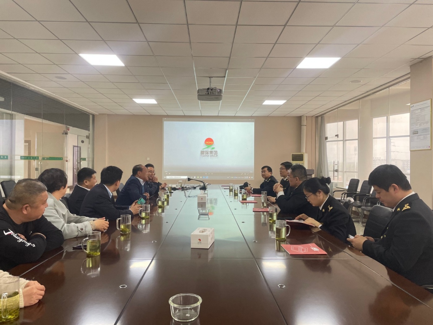 2021年3月18日(星期四)下午,濟寧海關黨委書記、關長嚴學泉同志一行蒞臨曜暉集團調研指導工作。對曜暉集團項目建設、疫情防控影響、進出口情況、企業信用培育等工作進行了調研,并為企業提供了建議。表示將繼續服務企業,助力企業發展新局面。
