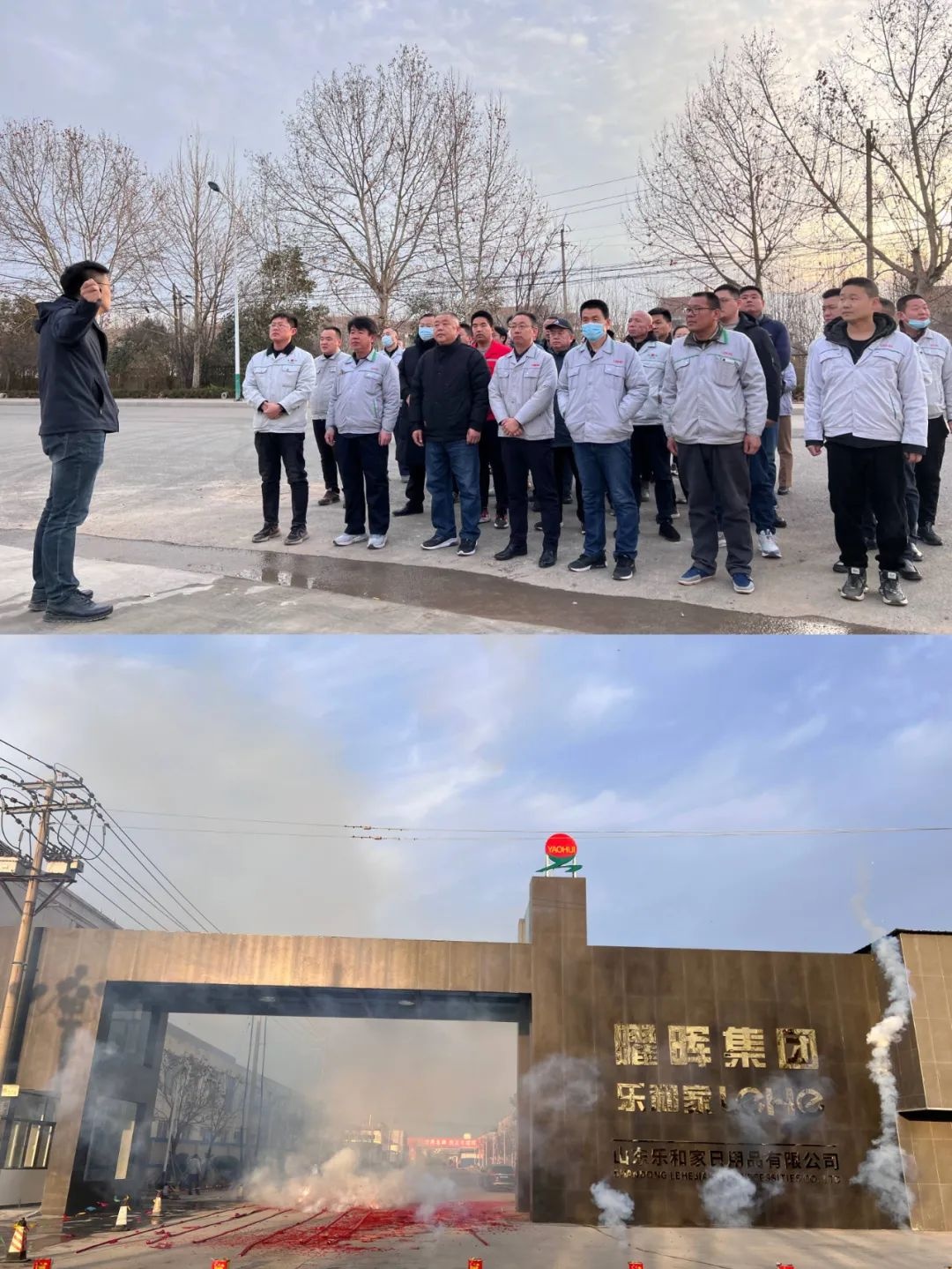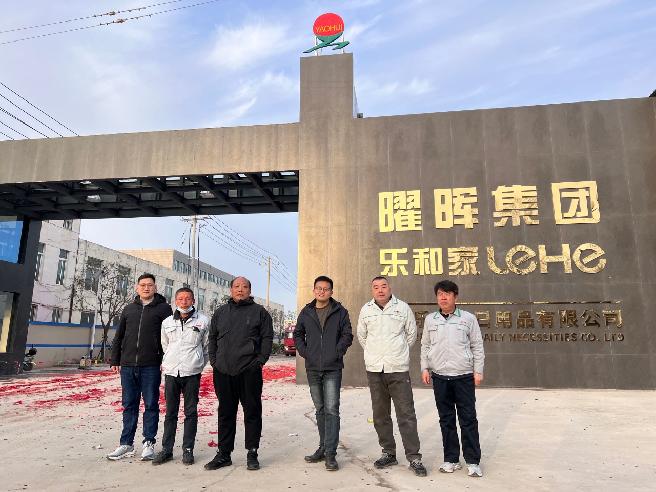 2023年2月21日上午,恰逢農歷二月初二,正所謂春龍抬首、鴻運當頭,在這喜慶的日子里,曜暉集團在廠區東大門舉行了簡短的新大門啟用儀式,公司領導徐正本、徐玉和、趙建新、劉超、王慶、渠海波、王宏彥、李樹英以及部分員工代表參加了大門啟用儀式。
